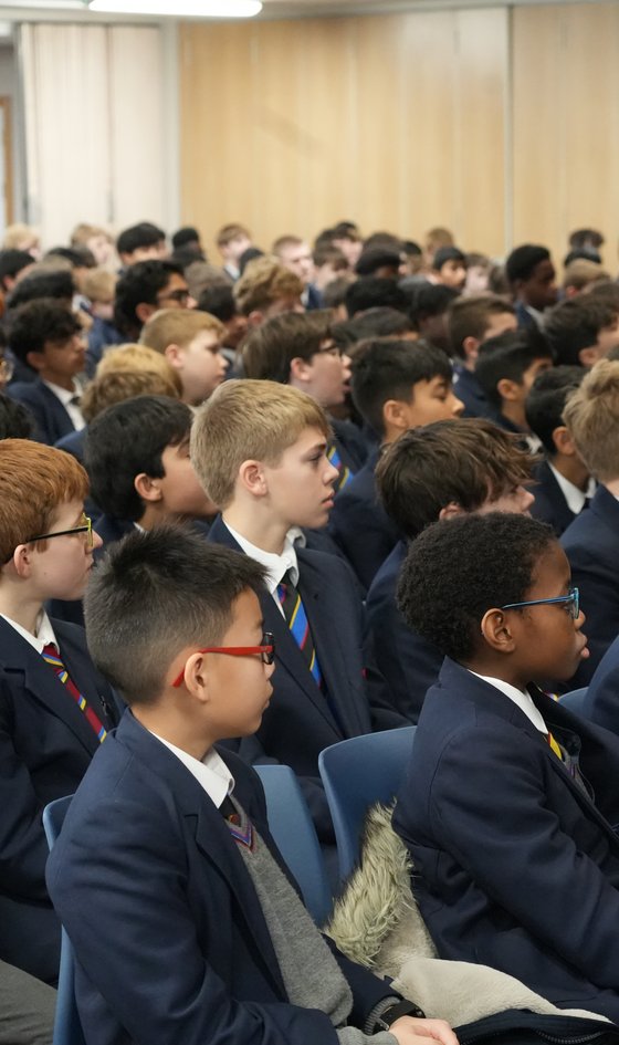 To mark Holocaust Memorial Day, the School invited Michelle Richman to tell the moving story of her father Zigi who was imprisoned as a teenager in Auschwitz-Birkenau concentration camp. The whole School was silent as Michelle spoke of the violence and dehumanisation her father endured and witnessed at the hands of the Nazis, and of the death of his family members under Germany’s fascist regime. Zigi was determined to share his story in the hope of confronting racism and hatred in all its forms, including the persecution of other marginalised groups during the Holocaust.