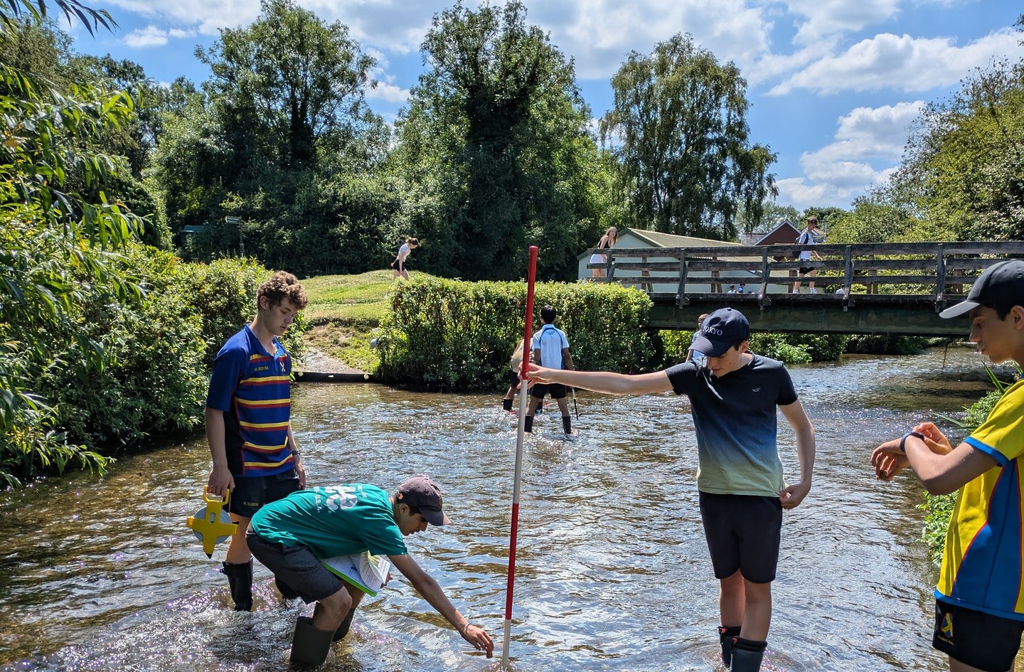 On two consecutive days in June the Fourth Form GCSE Geography pupils travelled to the River Lea to investigate the complex interaction of factors which lead to downstream changes in a river. They learned how to use a wide range of methods to measure river variables and discussed and evaluated their sampling strategies, all of which will serve as a great preparation for their written fieldwork paper next summer. The sun shone brilliantly on both days and the pupils enjoyed paddling in the refreshing cool water whilst developing their learning.