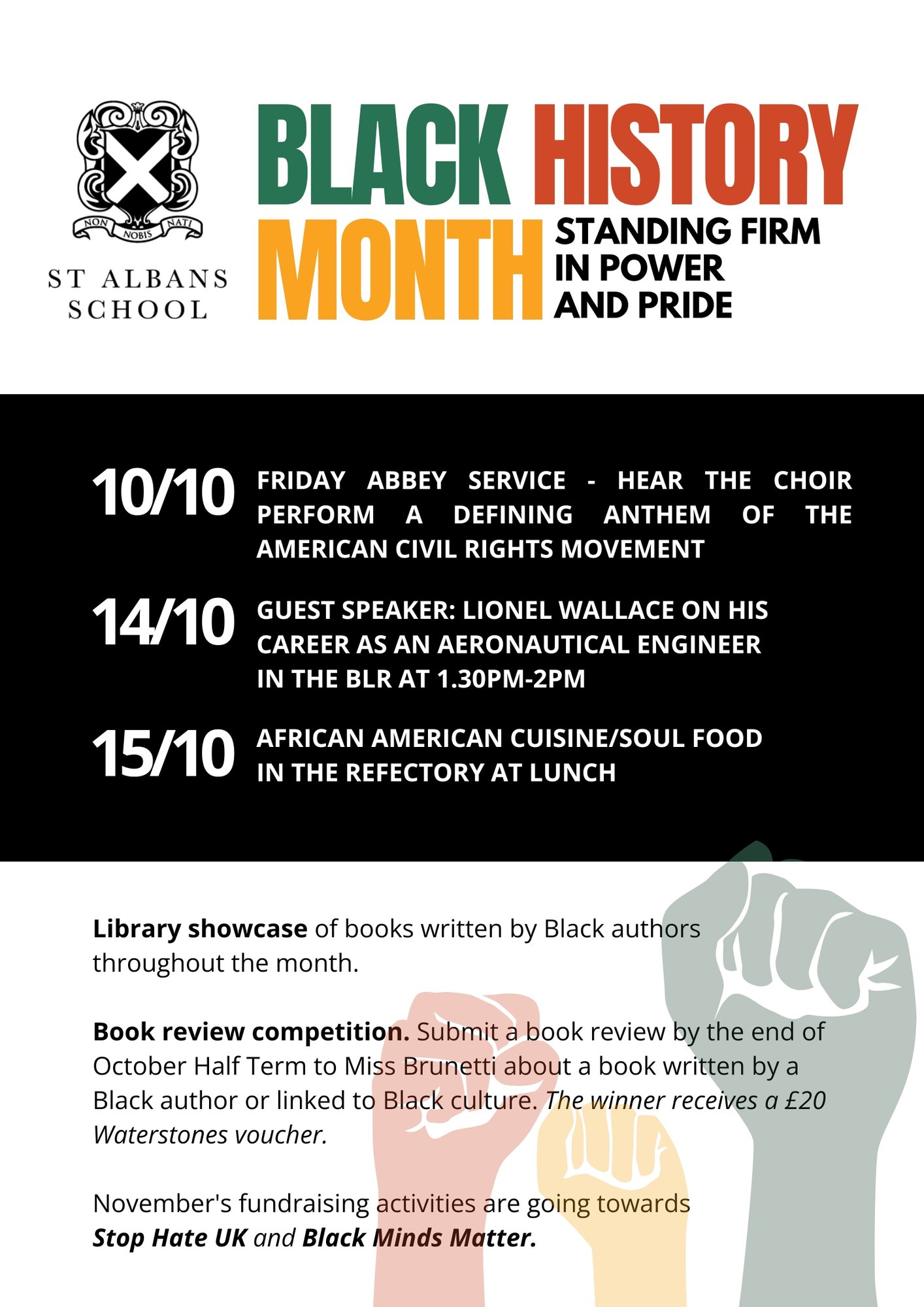 As part of our Black History Month programme, we were honoured to welcome Lionel Wallace, former High Sheriff of Hertfordshire, and father of JJ and former Head of School, John-Ellis, to speak to our school community. Dr Wallace shared his remarkable journey, from his career as an aeronautical engineer, to his service as High Sheriff, and his ongoing work in the ministry. His talk was both personal and powerful, offering insights into leadership, resilience, and the value of service. The central theme of his message was the idea that “words are seeds.” He spoke passionately about the importance of choosing our words carefully, to be kind, to encourage others, and to speak with purpose. His reflections reminded us that the words we say can plant ideas, inspire change, and leave a lasting impact on those around us. Thank you to Dr Wallace for an uplifting and thought-provoking session.
